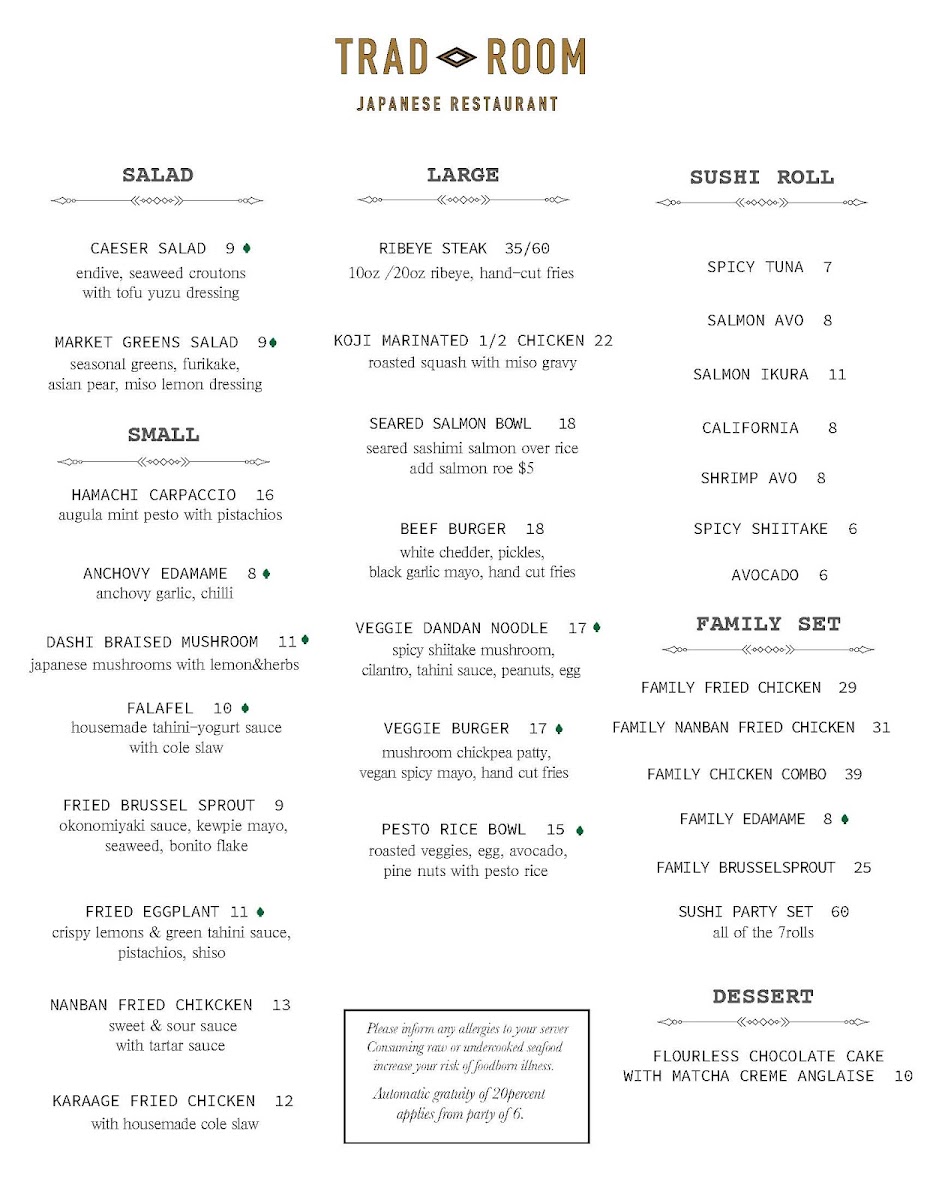5 Special Rolls. Crispy Spicy Tuna , Shachihoko Tempura Roll , Salmon Skin and Crab Roll , Asakusa Veggie Roll , Dragon Roll